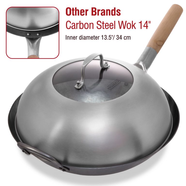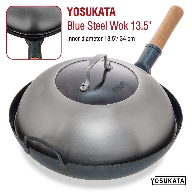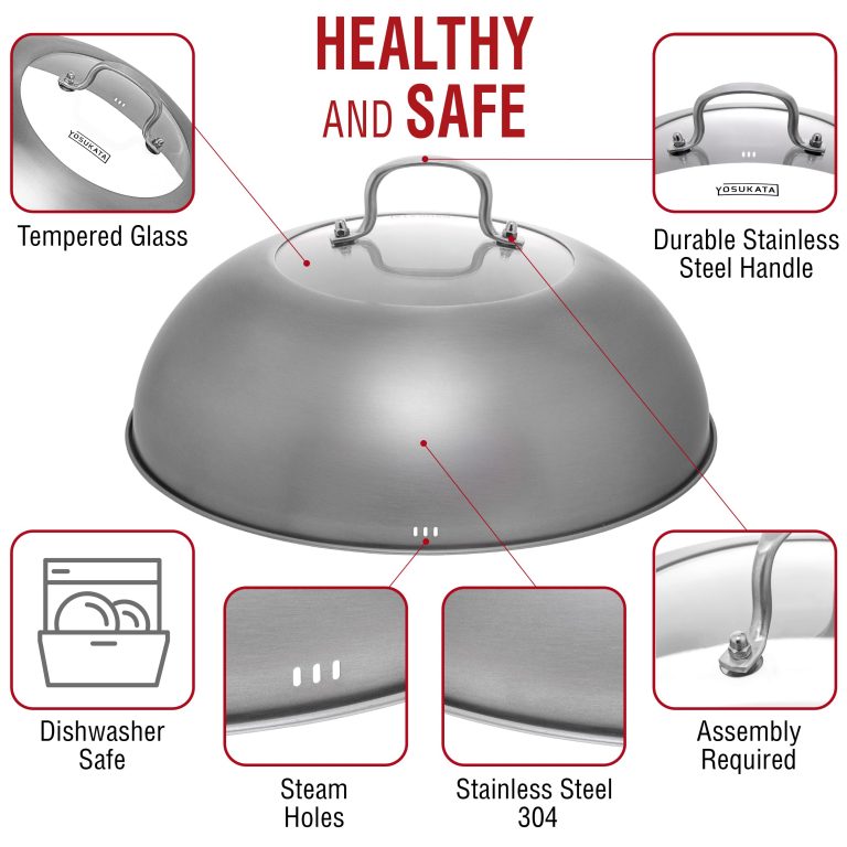 YOSUKATA Wok Lid 12.8 Inch - Premium Stainless Wok Cover with Tempered Glass Insert Steam Holes and Ergonomic Handle - Durable Wok Accessories - Dishwasher-Safe Lid for 13.5-Inch Wok for Asian Cooking Maximize your wok's functionality: Our stainless steel 12.8-inch lid cover traps and distributes heat evenly for more efficient cooking. These wok utensils concentrate all the flavors, so your food tastes better. Sturdy and dishwasher safe: Our wok cover for 13.5 inch woks is made of long-wearing stainless steel. This steel wok cover lid does not have an artificial coating that can leach into your food. Get better control: Unlike a traditional wok lid, our 12.8 wok lid cover has a tempered glass insert, so you can see what's happening inside without lifting it. The ergonomically designed steel handle is easy to hold Versatile: Our 12.8 wok cover lets you steam or sear without splattering. It can also be used as a cheese melting dome on a grill, a burger cover, or a basting cover to keep food tasty and warm. Improved design: The steam holes on our lid slowly release inside pressure to prevent splatters and burns. Order our wok lid dome with tempered glass to professionalize your cooking.