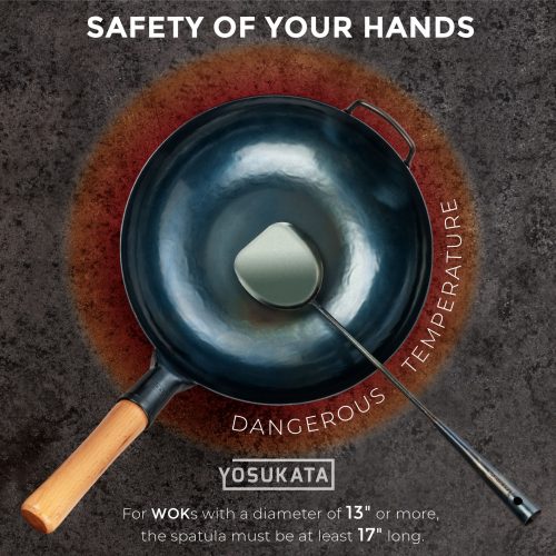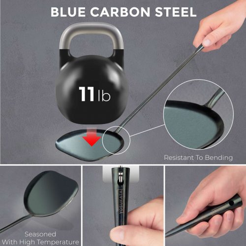Premium quality: YOSUKATA wok tools professional utensils feature one-piece construction and are made of high-quality, pre-seasoned carbon steel without any additives. This reliable Asian spatula and ladle require seasoning before use. Seasoning will protect them from rusting and make them non-stick.